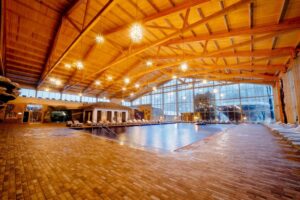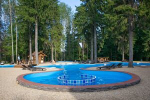 Да, открытый бассейн подогревается, работает круглогодично.
