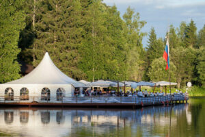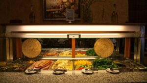 Расширенный шведский стол: завтрак (08:00-11:00), обед (13:00-16:00), ужин (19:00-23:00);в течение всего дня с 08-00 до 23-00 разливное пиво, кофе, чай, выпечка, фрукты, соки, пепси-кола, минеральная вода, алкогольные напитки (вино, водка, шампанское)