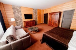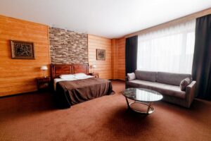 Для гостей отеля с 08-00 до 23-00 в ресторане отеля доступны алкогольные напитки (вино, водка, шампанское), доплата не требуется, данная услуга включена в систему отеля «All inclusive».